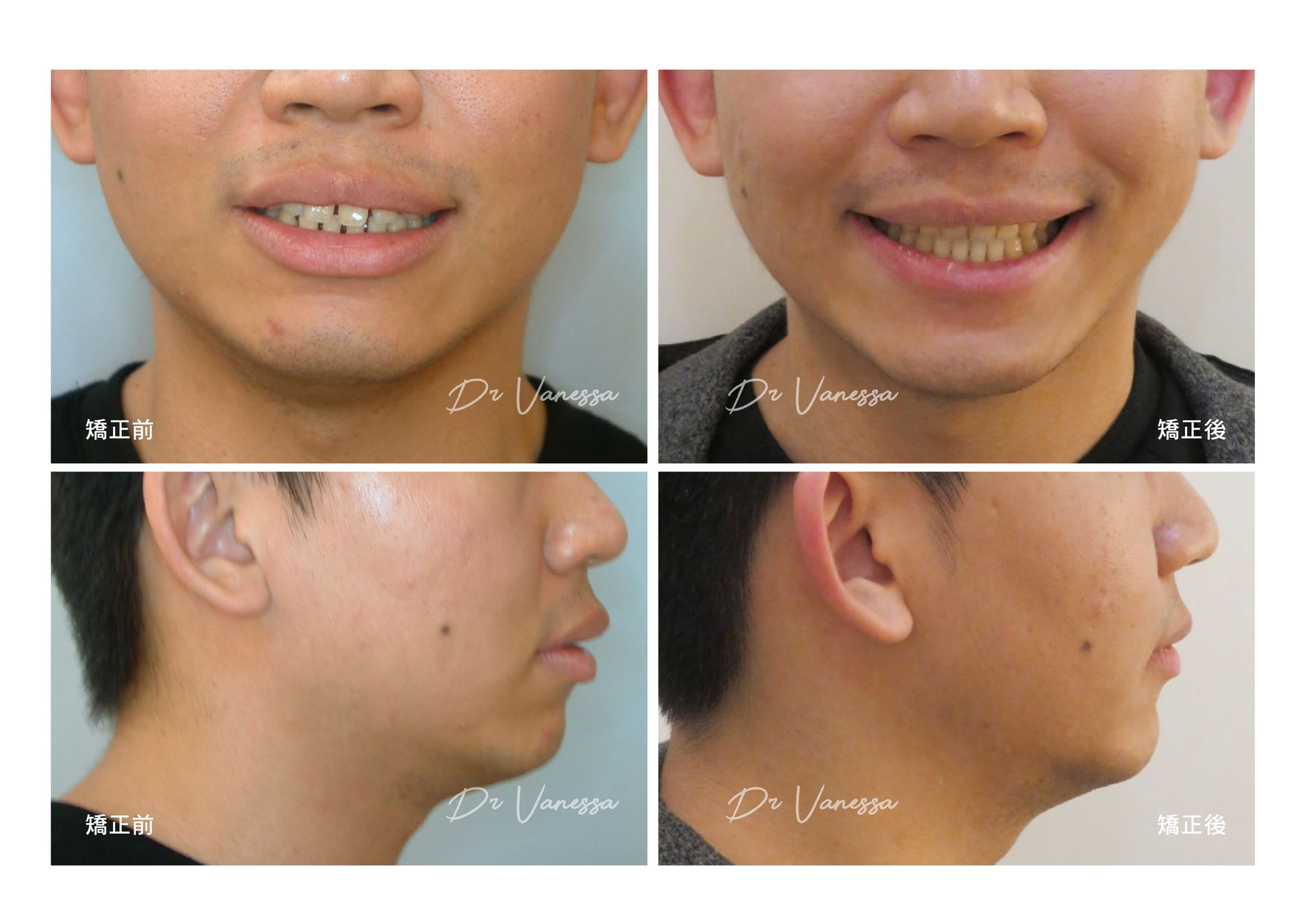 他決心利用牙齒矯正把所有問題一次解決,而經過他和醫師的共同努力,得到了超成功的治療結果!牙縫全部不見了,齒列變成整齊又乾淨,更棒的是刷牙清潔變得好容易,再也不用擔心蛀牙的問題了!他都笑稱牙套矯正真是CP值最高的投資啊!