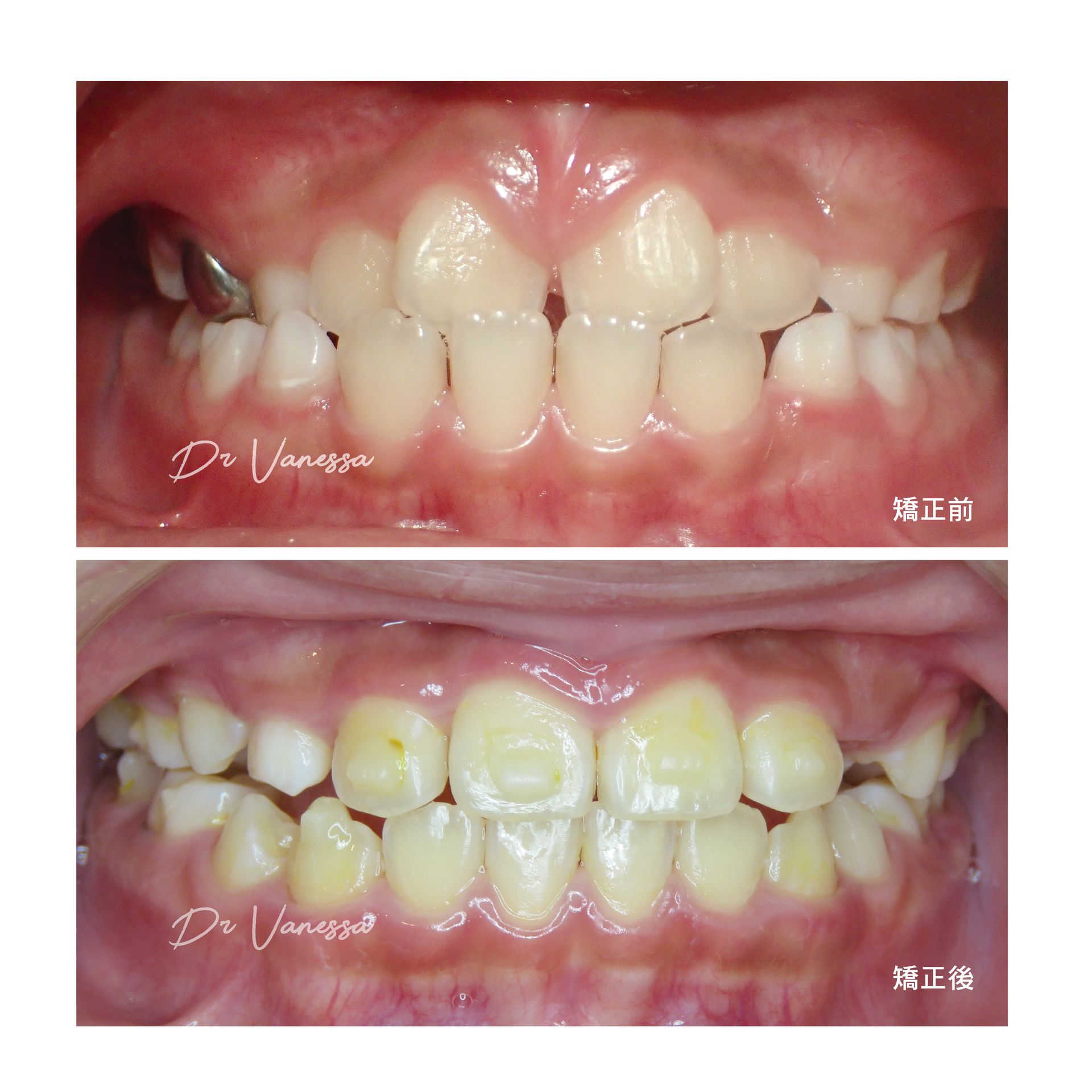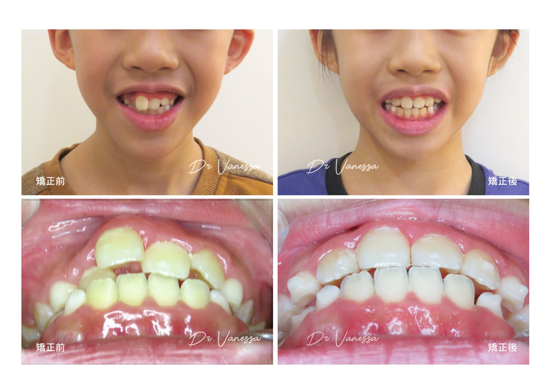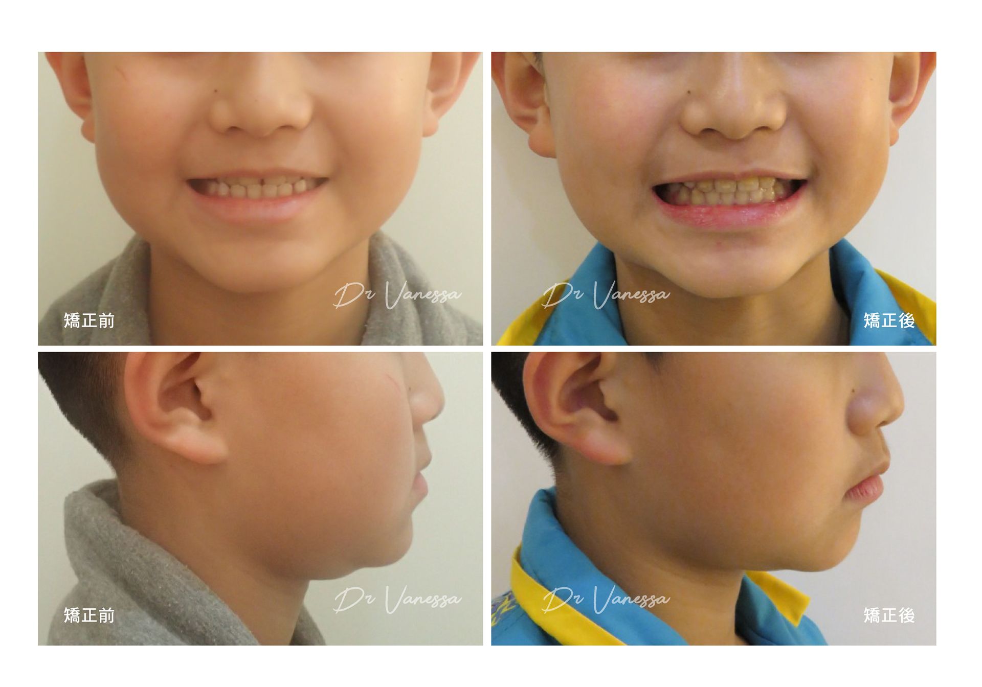 為什麼我的上下排門牙咬到時常會打架呢? L弟弟向外突錯咬的下門牙,吃飯時一直很困擾他⋯⋯ 幸好媽媽趕緊讓他戴上早期矯正牙套,配合骨架和齒型的調整之後,不但他突突的下門牙往後縮了,戽斗的臉型也明顯改善了!及早做完早期牙齒矯正後,現在弟弟吃飯咀嚼再也沒問題,臉型矯正後更變身自信小帥哥,青春時期更能專心讀書 開心玩樂,再也沒後顧之憂了!