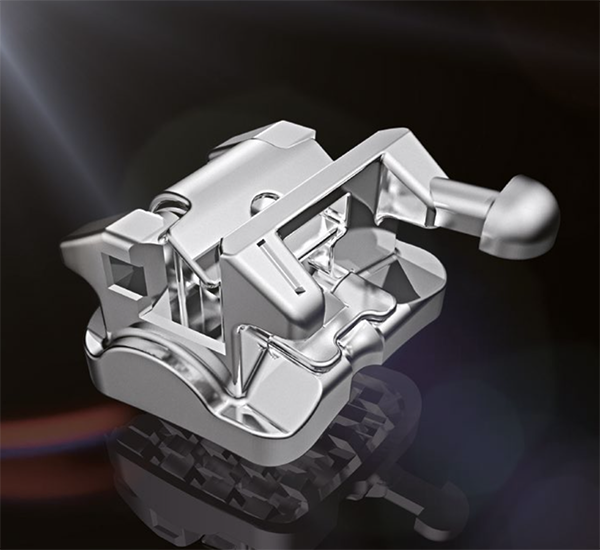 自鎖式矯正器上有掀蓋設計,不像傳統矯正器一樣要用小橡皮圈或鐵絲線來固定矯正線,可以減少臨床上的操作時間、減少鐵絲線磨破口腔黏膜的機會、也可減少口腔內異物,讓患者更方便清潔牙齒。
